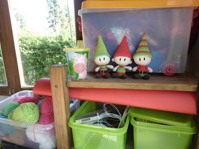 que bonitos te han quedado!!!! ya preparados para navidad, y tu hijo esta precioso ahi observando sus duendes, un besote muy grande!! ojala tenga mucho exito tanto el osito como el patron y se vendan muy bien;)